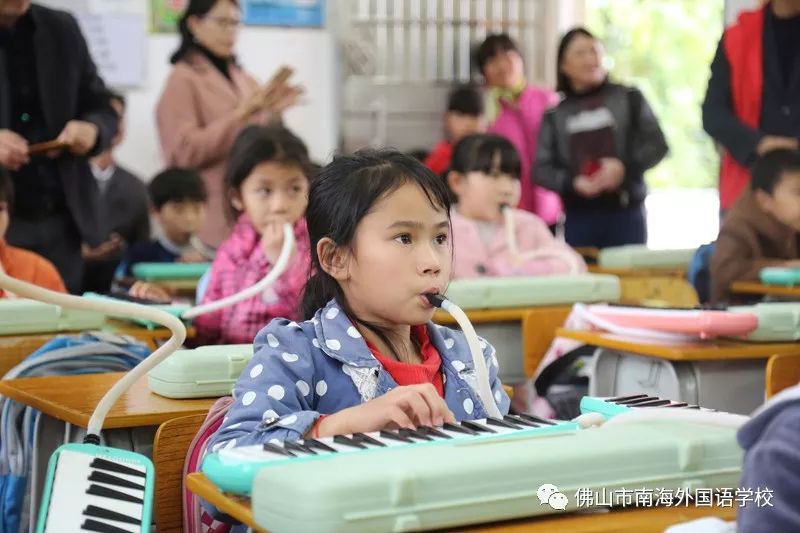 南海外国语学校青年教师杨剑雄和郭漫老师分别给孩子们带去了有趣的器乐课和美术课,他们的精彩教学点燃了孩子们的学习热情。